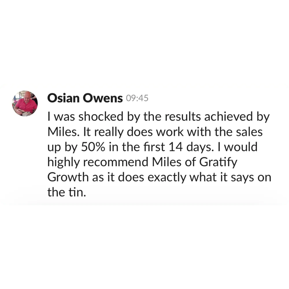 Not just through customer acquisition, but also earning you back your time to work on the business and not in the business. So you don't need to deal with the headache, downfalls and inconveniences that the traditional methods of acquisition provides.